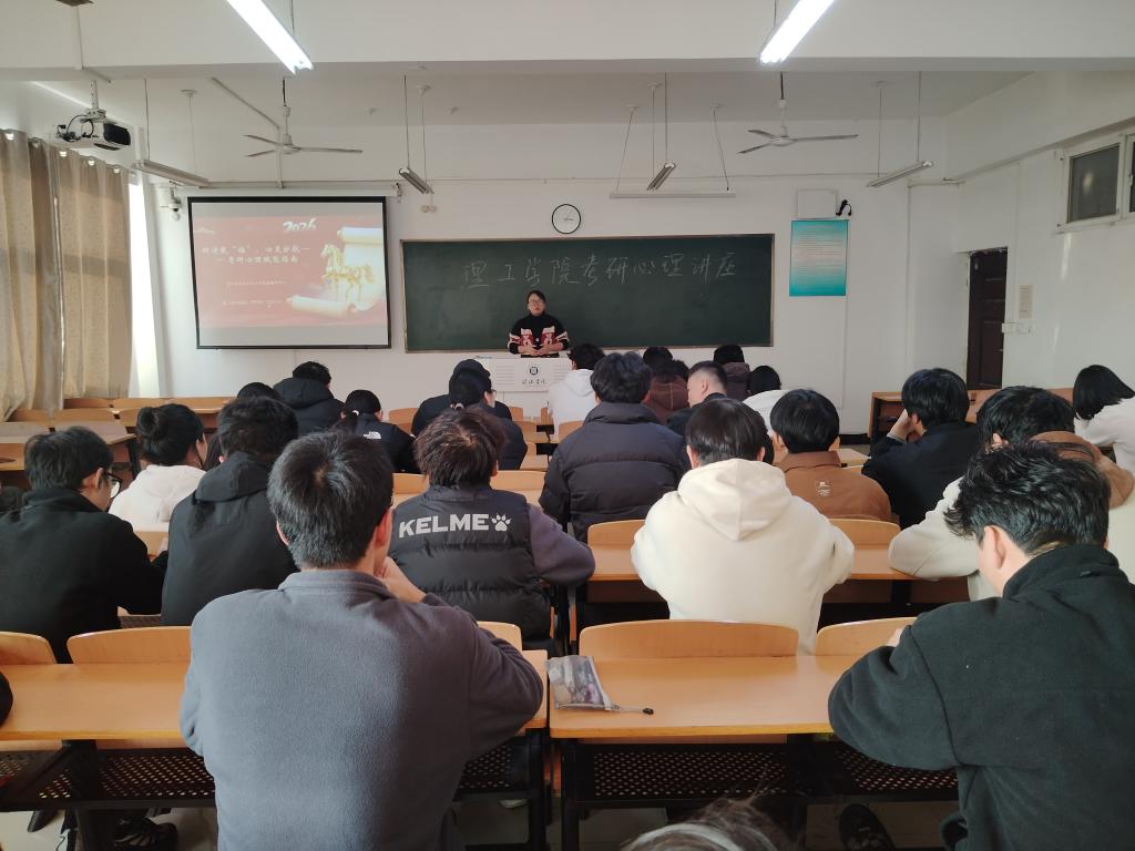 临近考研之际,为了增强考研学子的心理调适能力,缓解紧张焦虑情绪,以更加自信从容的姿态面对即将到来的研究生入学考试,12月9日下午,心理健康中心张晶晶老师莅临9428cn太阳集团为考研学生作“研途‘载’福,心灵护航”专题讲座,2025年考研学生100余人聆听了讲座。