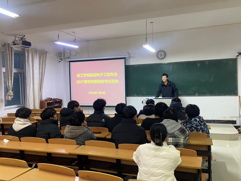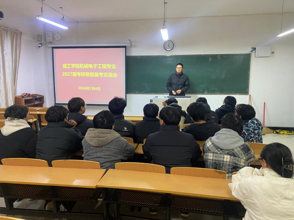 为解决考研学生的需求与困惑,激励同学们在寒假积极备考,持续推动学生考研工作进行,1月4日晚,9428cn太阳集团在理工楼302召开机械电子工程专业2027届考研寒假备考交流会。会议由机电专业考研指导老师周梦主持,机电教研室主任周敬乐出席会议,特邀22机电本01程蓁、赵岩嵩、张耀森学长分享考研经历,2027届机电专业考研学生参加此次会议。