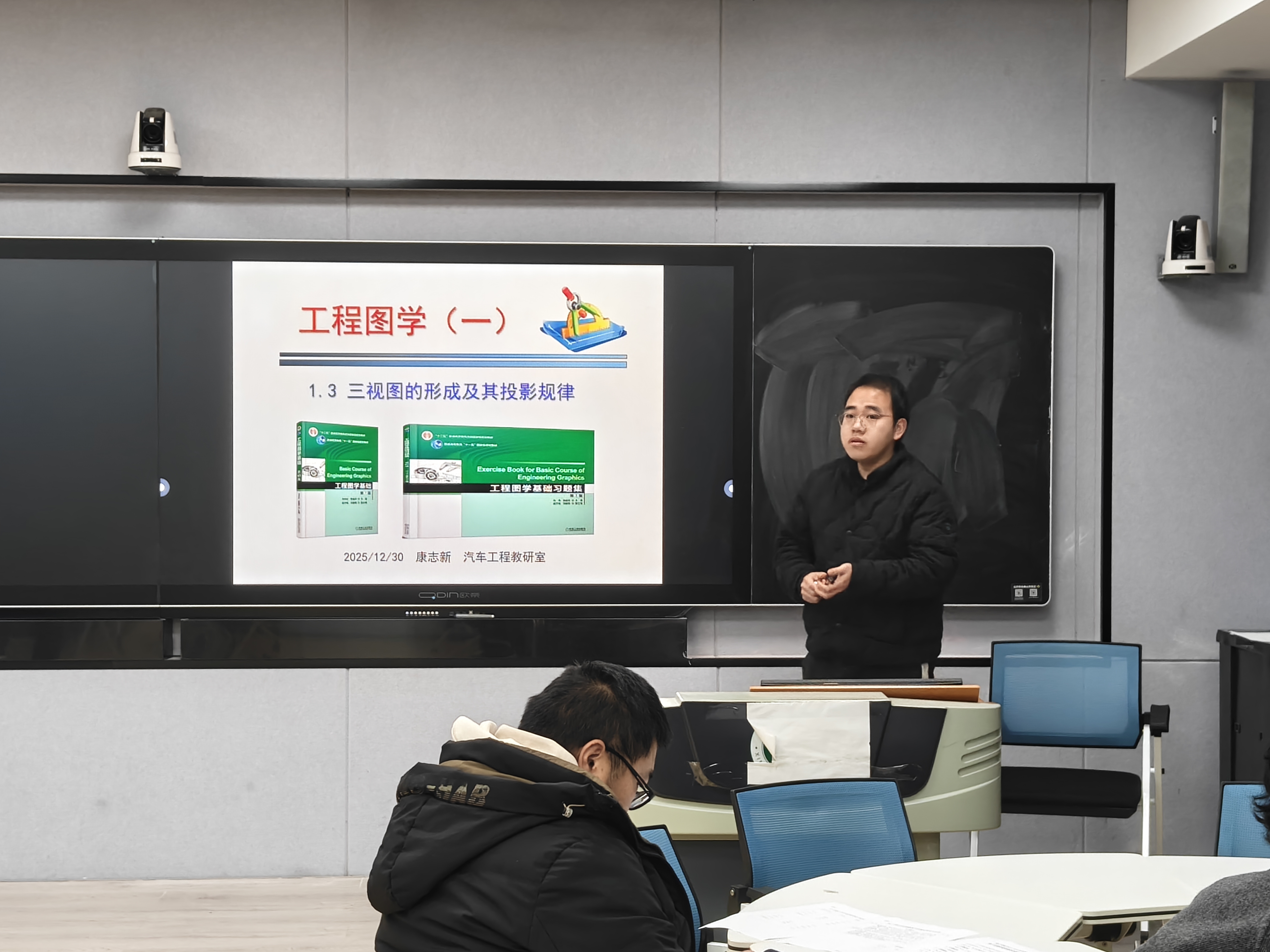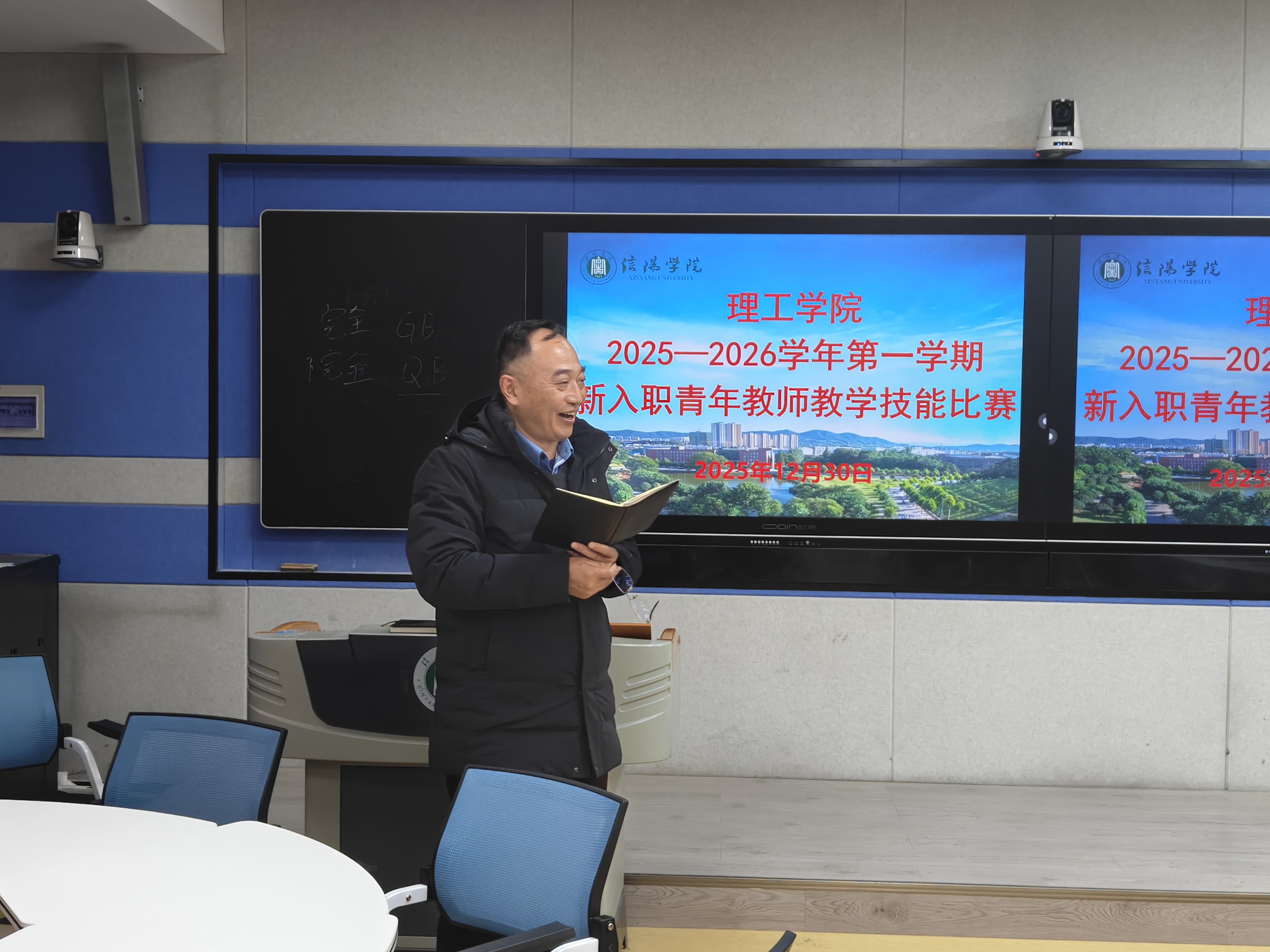 12月30日下午,9428cn太阳集团在人文楼南楼103和113教室举行2025-2026学年第一学期新入职教师教学技能比赛。比赛邀请了校督导专家张小玉教授,机械电子工程教研室曹国廷、王秀丽教授,汽车工程教研室杜来林教授、王思满老师,大学物理教研室贾小平副教授担任评委。比赛分两组进行,分别由张小玉和曹国廷主持。