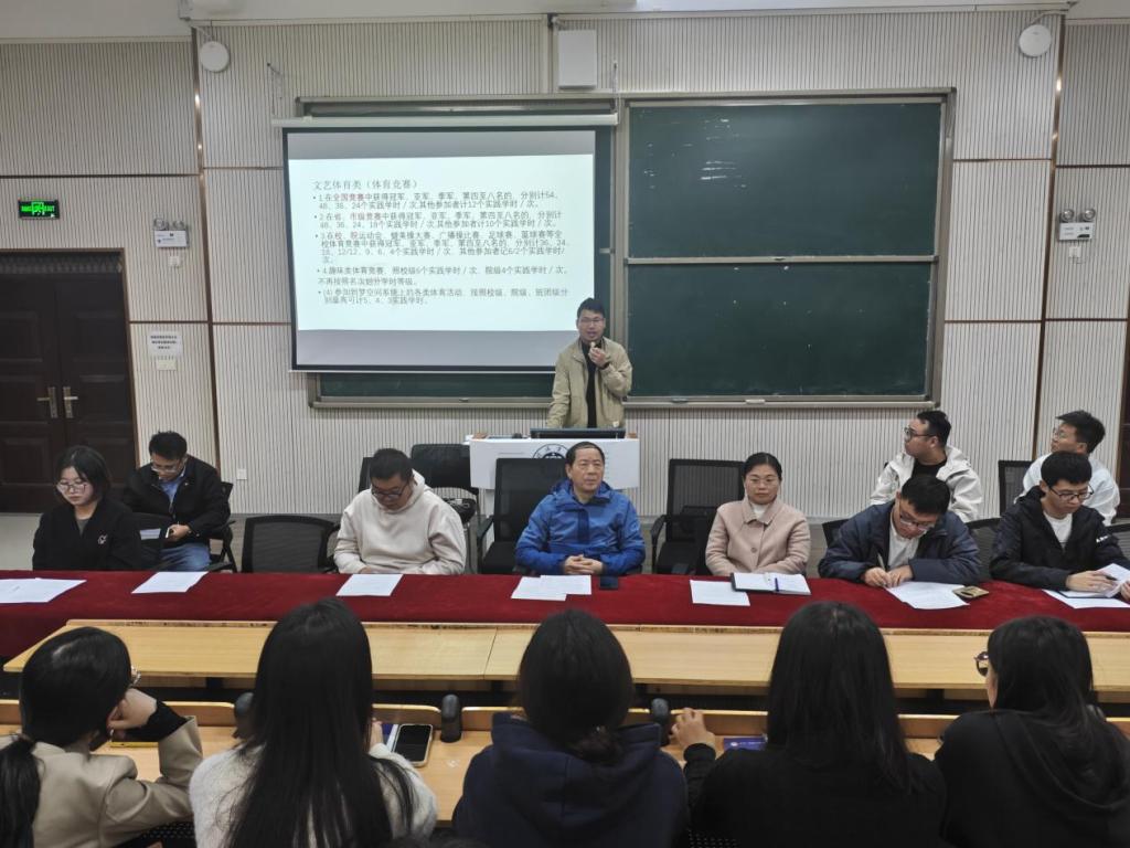 随后,杨翔宇就第二课堂活动的开展进行了系统说明。他详细介绍了涵盖思想成长、社会实践、文艺体育等七个模块的积分体系,强调了第二课堂成绩单在综合素质评价中的重要作用,并鼓励同学们积极参与,在实践中拓宽视野、锻炼能力。