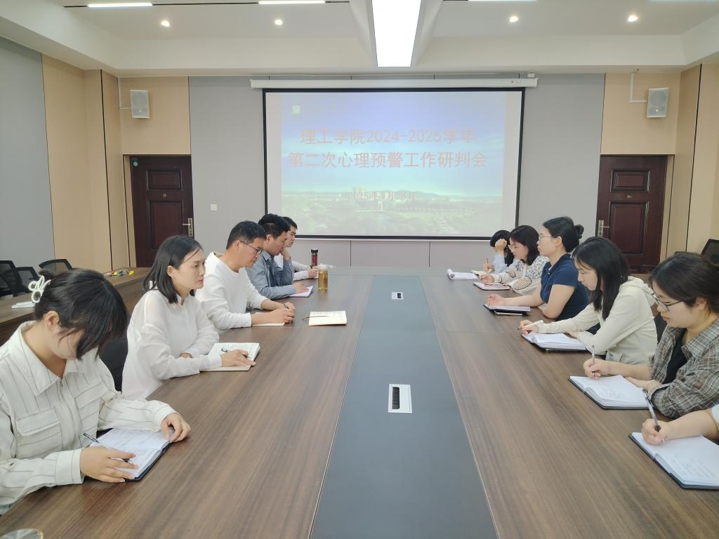 4月28日下午,9428cn太阳集团在理工楼201会议室召开2024-2025学年第二学期第二次心理预警工作研判会,党总支书记赵佳出席会议,全体辅导员参加会议,会议由心理辅导站站长甘玉锋主持。