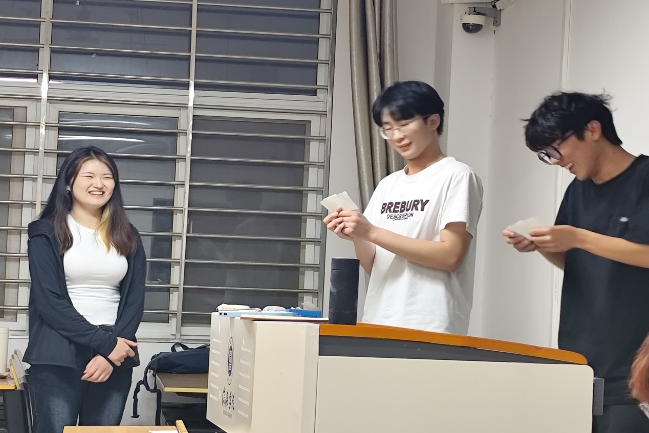 活动以一系列趣味心理游戏展开。在“三词造句”环节,同学们随机抽取词汇卡,需在限定时间内将几个看似不相关的词语串联成有趣句子。现场妙语频出,大家天马行空的创意引发阵阵欢笑,既锻炼了思维能力,也促进彼此交流想法。“团队翻牌”游戏互动性十足,参与者需快速翻牌寻找相同图案,过程中彼此配合、互相提醒,紧张刺激的氛围让同学们沉浸其中,有效提升了团队协作能力。最后的“你画我猜”环节将活动推向高潮,多人通过绘画传递信息,台下同学则根据画面猜词,简单的线条勾勒出无限创意,默契的配合展现出深厚情谊,现场气氛热烈非凡。