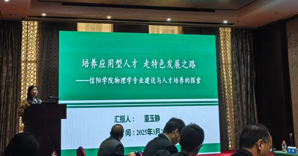 日前,由信阳师范大学承办的河南省物理学会第八届高校物理学院院长(系主任)论坛在中乐百花酒店举行。来自来自全省高校的30余位物理学院院长(系主任)应邀参会。论坛围绕物理学科研、教学、学科建设及管理经验交流等专题进行研讨。此次论坛我校9428cn太阳集团物理教研室主任董玉静博士应邀参加,并作专题报告。