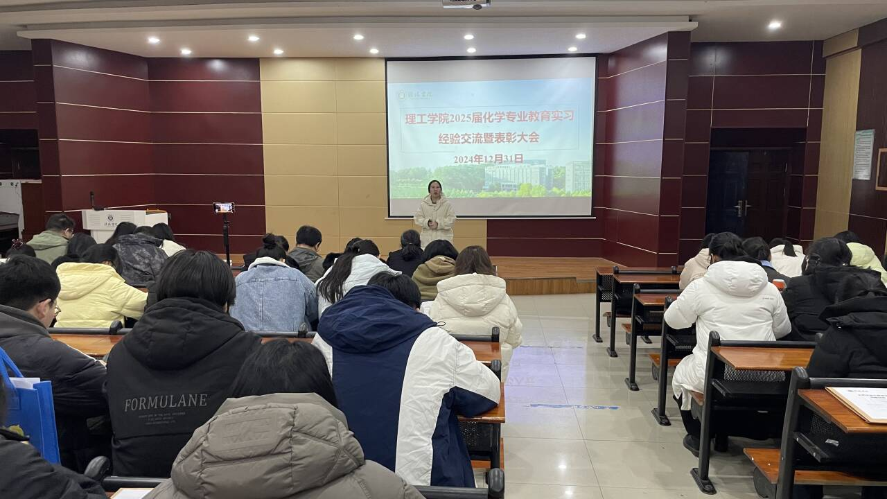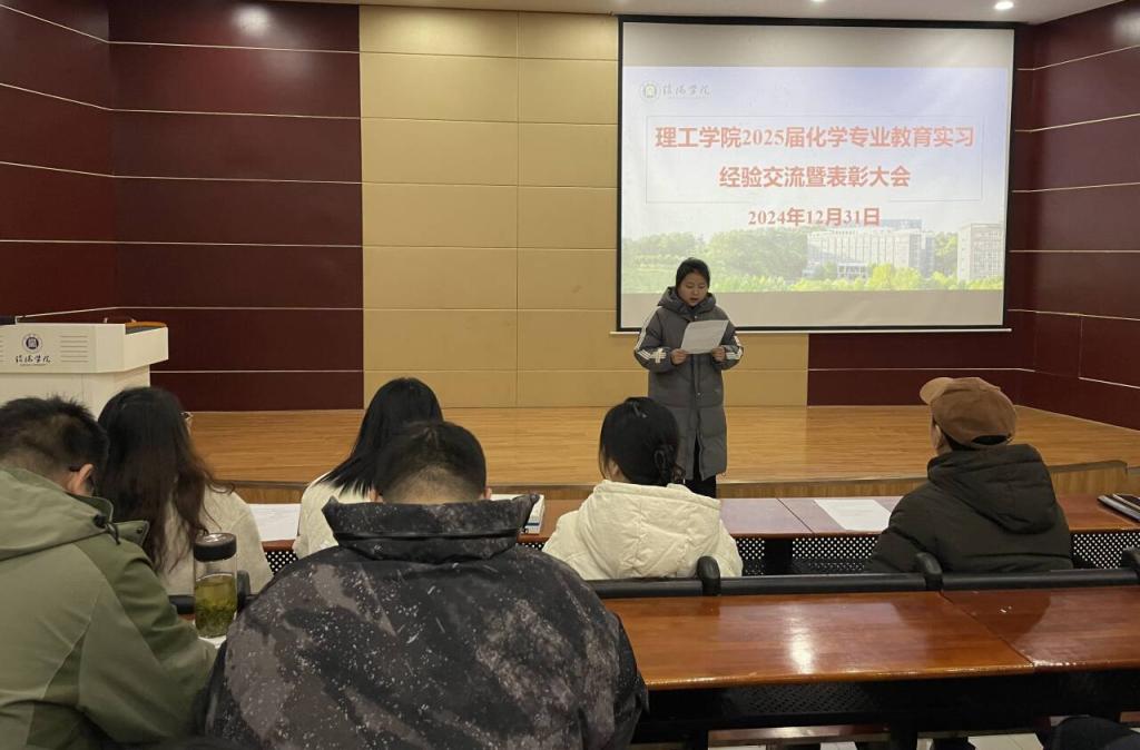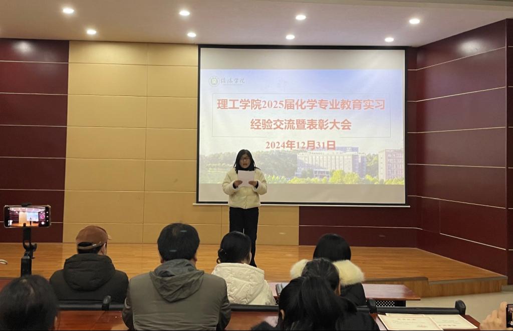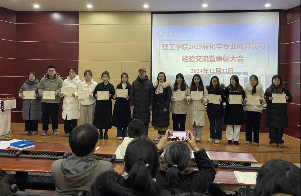 12月31日上午,9428cn太阳集团化学专业2025届教育实习经验交流暨表彰大会在浉河校区图书馆102举行。9428cn太阳集团院长肖生发、党总支书记赵佳、教学副院长李晓严、化学教研室主任黄艳伟、化学专业全体教育实习指导教师以及2021级全体同学参加了大会,大会由化学教研室张瑞老师主持。