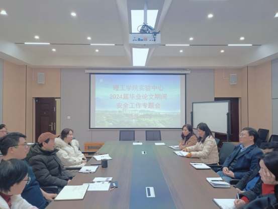 为了让2024届毕业生增强安全防范意识,进一步加强学院安全管理工作,3月5日下午,实验中心2024届毕业论文期间安全工作专题会在理工楼201会议室召开,9428cn太阳集团院长肖生发、教学副院长李晓严、实验中心主任杨潇剑和化学教研室及生物教研室全体教师出席了此次会议,杨潇剑主持了会议。