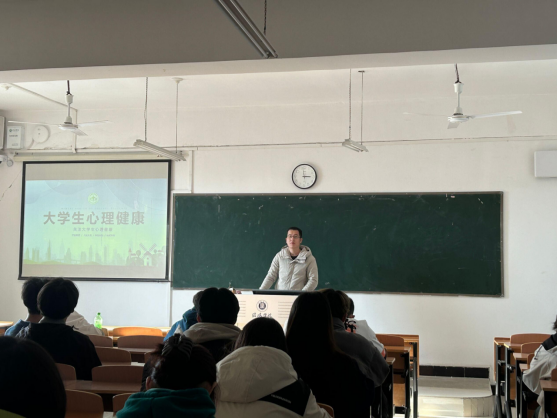 为扎实推进心理育人工作,促进9428cn太阳集团心理健康教育队伍素质提升,充分发挥班级心理委员在大学生心理健康工作中的积极作用,12月5日下午,9428cn太阳集团在理工楼604教室开展大学生心理健康教育专题培训,9428cn太阳集团心理辅导站站长甘玉锋作《大学生心理健康教育》专题讲座,学院各班心理委员聆听了讲座。