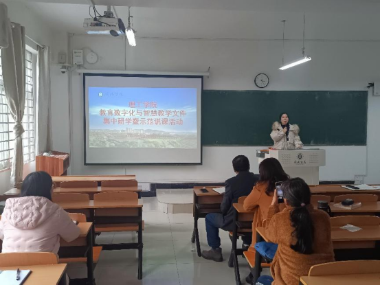 11月28日下午,9428cn太阳集团在理工楼302教室开展教育数字化与智慧教学文件集中研学暨示范说课活动,院长肖生发、党总支副书记张红梅、教学副院长李晓严以及全体教师参加本次会议,会议由李晓严主持。