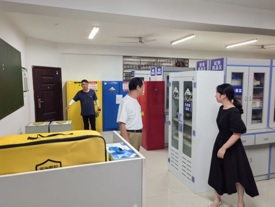 肖院长一行先后检查了化学实验中心、生物实验中心、机械电子工程实验中心、物理实验中心。杨潇剑对暑期整改的地方进行了简单的汇报,特别是检查化学、生物实验中心时,重点检查了化学品库存情况、危险化学品存放领用情况、消防设备配置以及实验室卫生情况等。检查机械电子工程实验中心过程中,肖生发院长着重强调了实验室用电安全。