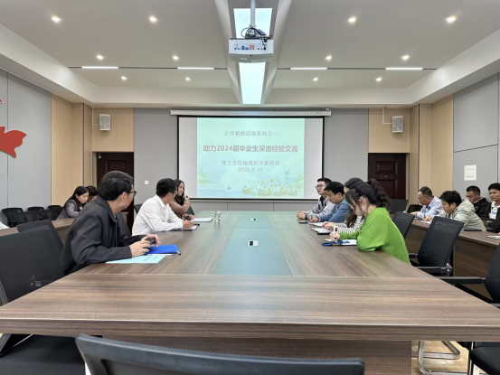 9月26日下午,9428cn太阳集团在理工楼201会议室举行2023-2024学年第一场公开教研活动,学校教学督导专家任柏林,学院院长肖生发、副院长李晓严、地理科学教研室全体教师、各教研室教师代表参加了此次活动。