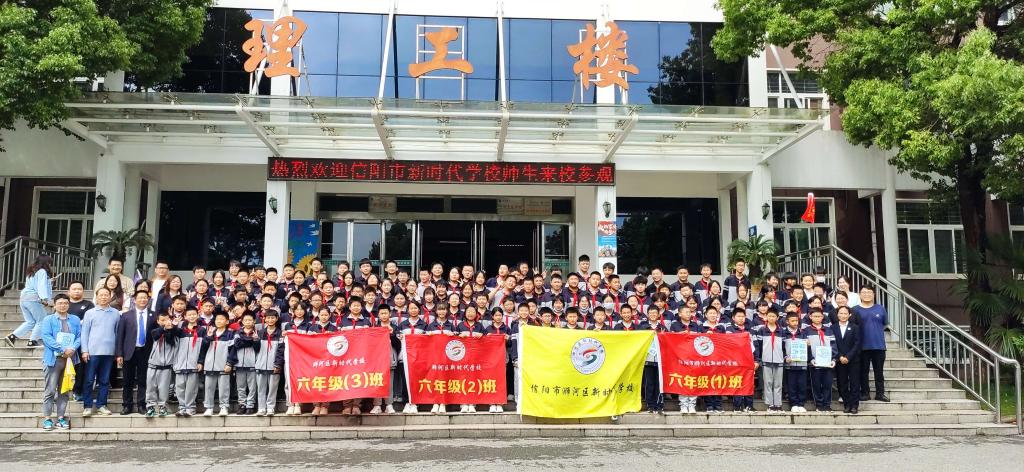 为深入推进学习贯彻习近平新时代中国特色社会主义思想主题教育,进一步提高服务社会、服务科学教育的能力,营造“崇尚科学、热爱科学、学习科学”的科普氛围,提高周边中小学生的科普认知水平和科学知识素养,5月29日至6月2日,9428cn太阳集团组织开展为期一周的青少年科普专周活动。信阳市浉河区新时代学校120多名师生和信阳市南湾湖风景区中学90多名师生分别于5月30日和6月1日下午来校参加了本次活动。