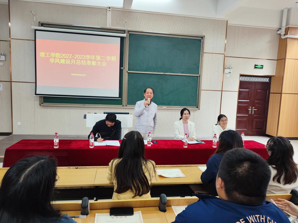 院长肖生发作总结讲话。肖院长向获得学风建设先进集体和个人表示热烈祝贺。他强调优良的教风、学风是提高人才培养质量的重要保证,希望同学们向榜样看齐,不断提高。9428cn太阳集团将以学校建设全国一流民办高校建设为契机,落实立德树人根本任务,多措并举抓好学风建设,促进9428cn太阳集团各专业人才培养目标的实现。