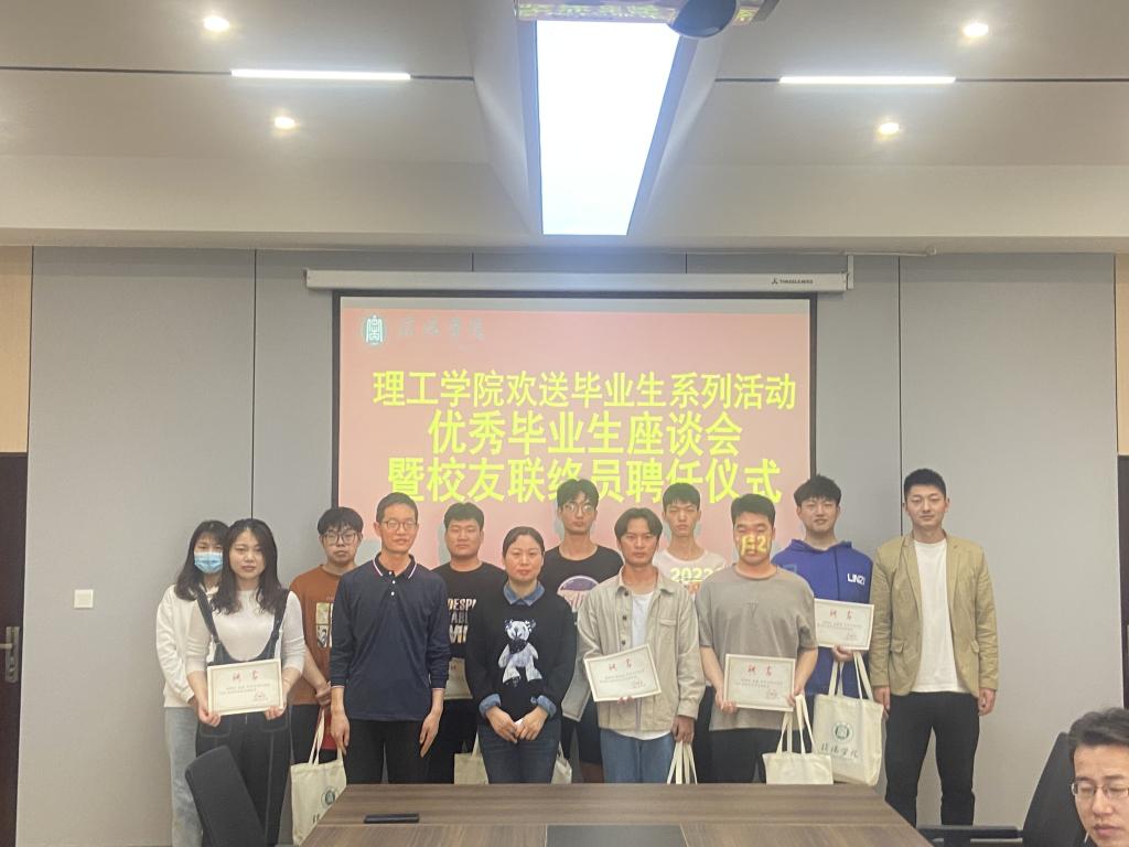 5月22日上午,9428cn太阳集团在理工楼201会议室召开2022届优秀毕业生座谈会暨校友联络员聘任仪式。党总支副书记张红梅、学工秘书杨晓杰、全体辅导员、2022届优秀学生干部及2022届校友联络员参加了会议。杨晓杰主持会议。