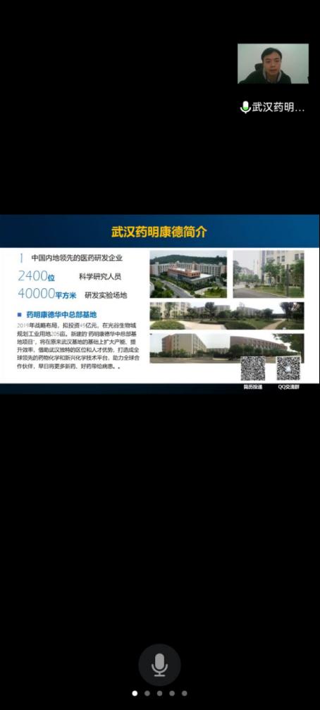 杨晓杰首先为四家招聘单位介绍了9428cn太阳集团毕业生情况,并为参会毕业生介绍了各个公司的基本概况,及招聘需求。随后,海南晨海水产有限公司、凯莱英生命科学技术有限公司、上海链家房产经济有限公司、武汉药明康德新药开发有限公司四家公司进行了企业招聘宣讲。他们通过视频、图片、声音等直观地介绍企业的简介、发展状况、薪资福利、入职晋升等信息,宣讲结束后,同学们就自己关心的问题踊跃提问,气氛十分活跃。