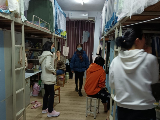 在宿舍检查中,辅导员们一直为学生强调和讲解学校疫情防控政策和措施,提醒学生注意安全防护。提醒变黄码学生根据操作步骤提交申请,不恐慌,不随意外出。同时,还温馨提醒学生们杜绝使用违规电器,保证宿舍的用电安全。