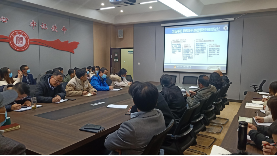 11月24日下午,9428cn太阳集团全体教师在理工楼201会议室集中收看了高校教师课程思政教学能力线上培训会。