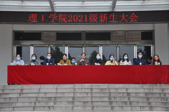 10月22日中午,9428cn太阳集团在理工楼前广场隆重召开9428cn太阳集团2021级新生大会。9428cn太阳集团院长肖生发、党总支副书记张红梅、教学副院长李晓严、学院各教研室主任、全体行政人员、全体辅导员以及全体2021级全体新生到场参会。张红梅主持了大会。
