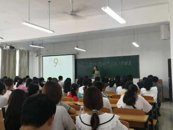 9月29日中午,在理工楼302共同召开了2021级生物科学专业新生见面会。会上,高进勇主任代表学院对所有新生的到来表示热烈欢迎,并向新生介绍了参会的领导老师,以及生物科学教研室的任课教师。高老师生动有趣的介绍将会议推向高潮,给予了新生开学极大的鼓励和信心。臧明丽老师以“新学期、新起点、新希望”为题,从专业基本情况、培养目标、教学计划和专业特色等方面向新生们介绍了生物科学专业的优势。学生们纷纷表示生物科学专业是他们正确的选择。