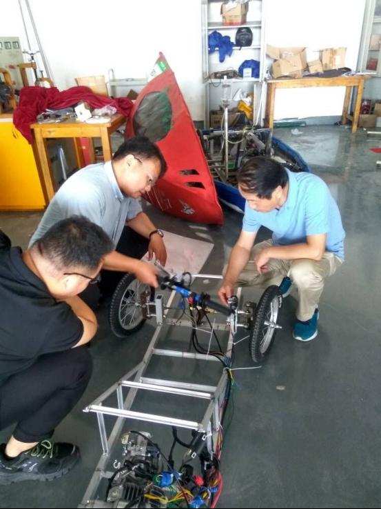 肖院长仔细查看了燃油车和电动车的设计制作情况,对于燃油车,肖院长指出要在安全性、可靠性及转向设计方面进一步优化改进,争取在原有成绩基础之上取得突破。对于电动车,肖院长鼓励大家要同心协力,集思广益,大胆创新,不断实践,制作好第一代电动车,尽快让第一代电动车跑起来。