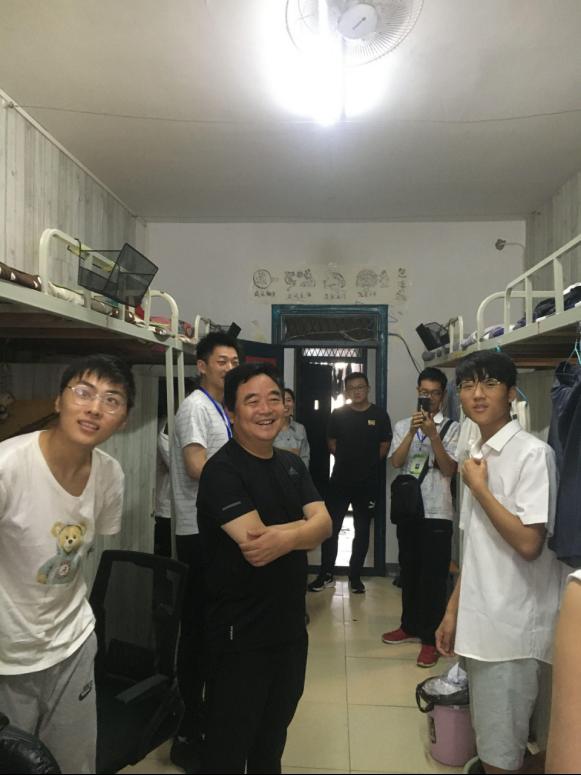 走访过程中,他亲切询问学生复习情况,了解学生的暑假安排等。看到干净的宿舍地面、认真备考的学生,看到和谐的宿舍关系褚书记非常满意。他指出,宿舍安全要高度重视,要消除学生宿舍楼各类安全隐患,用好班级信息员,切实维护校园安全稳定,给学生创造安全、文明、整洁、舒适的学习生活环境。