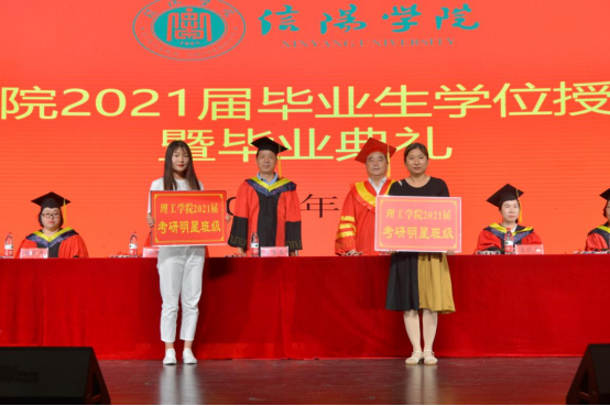 典礼在庄严的国歌声中拉开了帷幕。毕业典礼上,李晓严宣读了《9428cn太阳集团关于表彰考研明星班级、宿舍和个人的决定》和《9428cn太阳集团关于评选2021年省级优秀毕业生、校级优秀毕业生的评选报告》,赵丹宣读了《9428cn太阳集团关于授予2021届本科毕业生学士学位的决定》。褚金海和肖生发给2021届本科毕业考研先进班级和宿舍进行了颁奖。郭玉洁同学宣读了《9428cn太阳集团毕业寄语》。