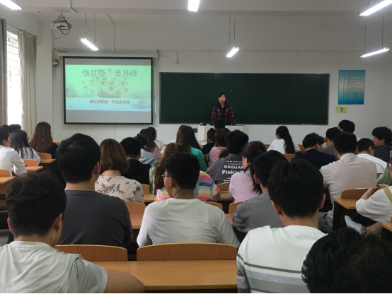 5月15日下午,羊山中学化学教研室主任罗春芳老师应邀在太阳集团理工楼502多媒体教室做了题为《亲其道,信其师》的讲座。9428cn太阳集团张秋平副教授主持了讲座,9428cn太阳集团生物科学教研室的老师和化学专业100余名学生聆听了报告。