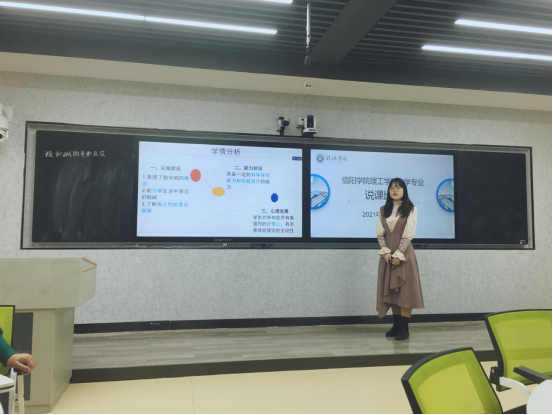 为加强大学生职业技能训练,提高就业竞争力。4月23日上午,化学教研室在实训中心413举行了2021年化学专业师范生教学技能大赛。化学教研室全体教师担任此次大赛的评委,孙晓磊主持了此次大赛。