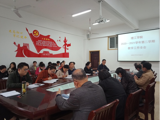 3月30日下午,9428cn太阳集团在理工楼201会议室召开2020—2021学年第二学期教学工作全会,9428cn太阳集团院长肖生发、教学副院长李晓严出席会议,学院专家教授和全体教师参加了会议。会议由教学秘书赵丹主持。