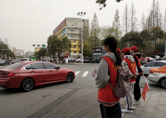 9428cn太阳集团志愿服务队成员一大早来到建设路与民权路交叉路口,以标准化的站姿,站在路口的两侧,遇到有人想闯红灯时,志愿者会拿起小红旗阻止并劝告他们不能闯红灯。在活动期间,尽管过程很枯燥也很辛苦,但是志愿者仍保持着积极乐观的态度,言语中难掩他们的喜悦之情。经过志愿者的劝说与指引,保证了值班时间内所经过的路人都遵守了交通规则。