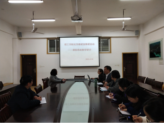 3月26日上午,化学教研室在理工楼201会议室开展了题为“课程思政教学研讨”的教研活动。校专职督导吴锐教授、9428cn太阳集团教学副院长李晓严及化学教研室的全体老师参加了此次研讨会。化学教研室主任张秋平主持了研讨会。