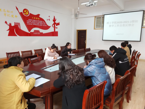 3月2日下午,9428cn太阳集团在理工楼201会议室召开期初教学工作自查反馈会。教学副院长李晓严,督导专家姚素梅、任柏林教授,教学秘书赵丹和各教研室主任参加了会议。