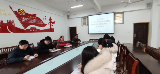 12月16日下午,9428cn太阳集团在理工楼201会议室召开2020-2021学年第一学期期末实验教学及实验室建设工作阶段检查会,9428cn太阳集团院长肖生发,特聘教授任柏林、吴锐,实验室管理教师杨潇剑,张锐等参加了会议。会议由杨潇剑老师主持。