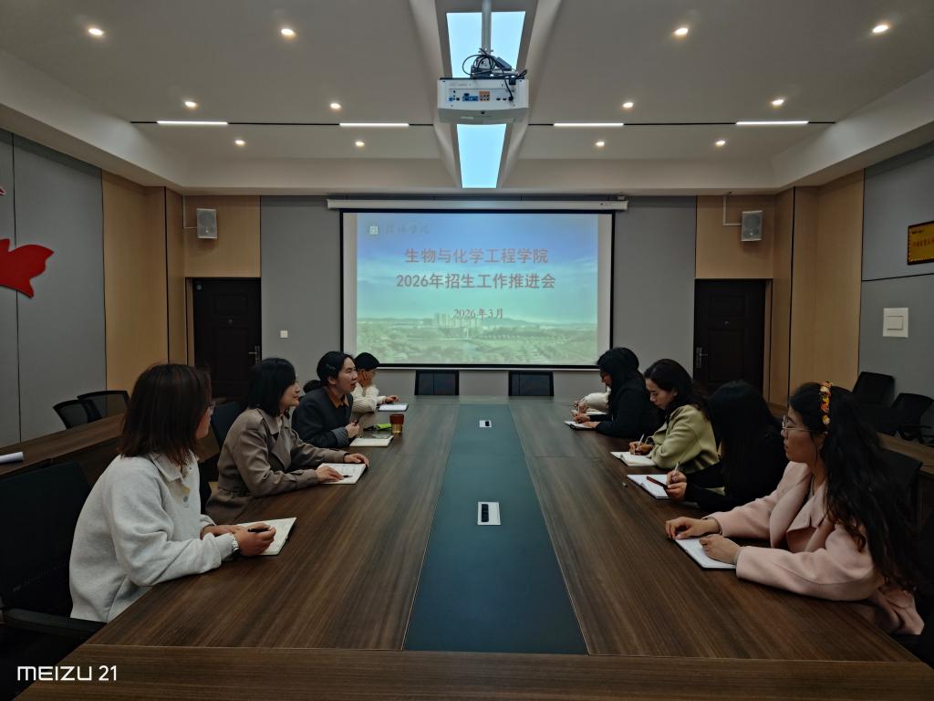 为全面部署2026年招生工作,进一步优化招生宣传策略,持续提高生源质量,3月25日下午,生物与化学工程学院在理工楼201会议室召开了2026招生工作推进会。学院行政班子、专升本招生专业教师、招生直播负责老师参加会议。
