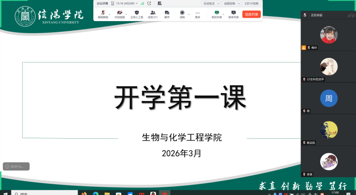 为深入贯彻落实立德树人根本任务,强化学生思想政治引领,筑牢校园安全防线,结合学校防范电信诈骗安全工作要求,近日,生物与化学工程学院组织各班级开展2026年春季学期“开学第一课”主题班会,覆盖全体学生,线上线下同步推进。