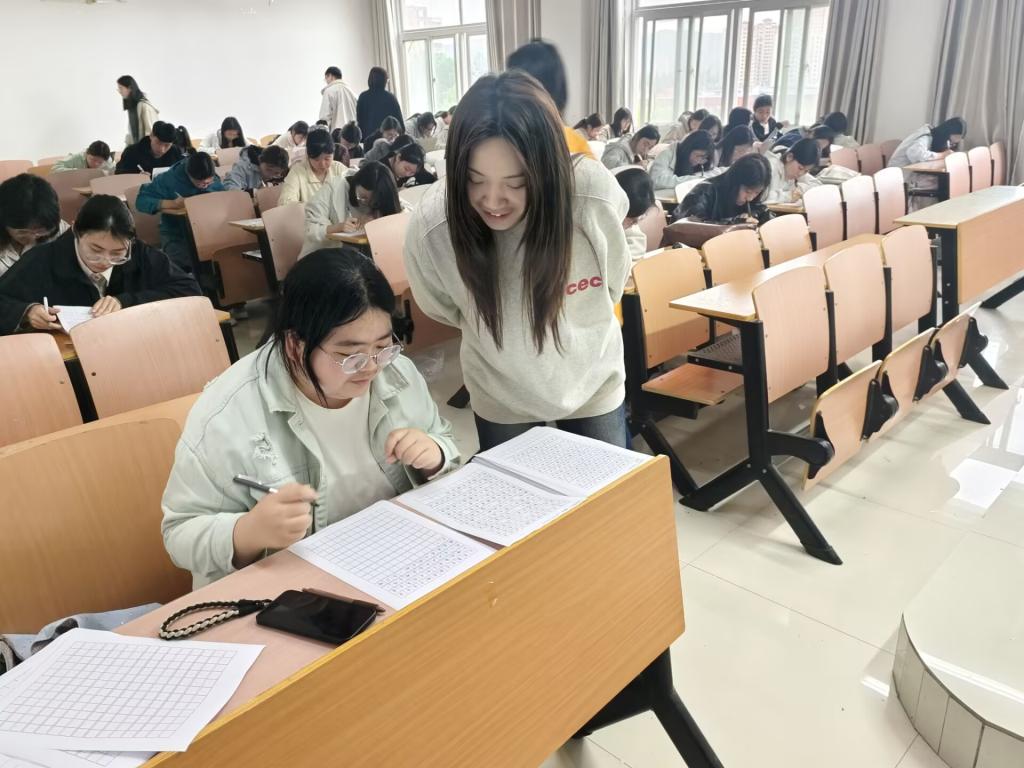 比赛现场墨香氤氲,参赛学子精神饱满、全神贯注,以笔传情尽显书写功底。硬笔笔画流畅、结构工整,粉笔板书规范、布局合理,软笔气韵生动、笔法娴熟,一幅幅作品充分展现了我院学子扎实的书写基本功。辅导员亲临现场观摩指导,对学子们的参赛态度和书写能力给予肯定。