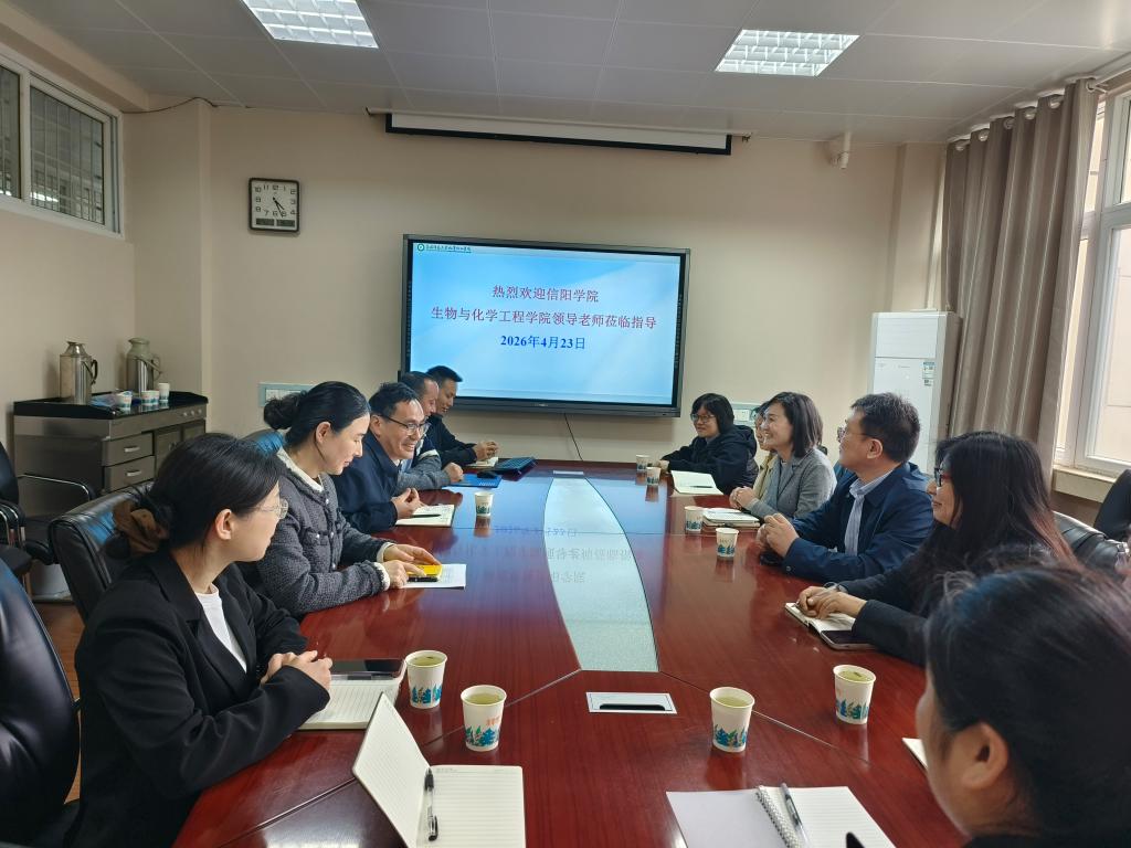为深入推进学院工科转型工作,借鉴信阳师范大学化学化工学院专业建设、实验室建设与人才培养等方面的先进经验,进一步明晰学科发展方向、优化办学思路,4月23日,生物与化学工程学院党总支书记赵佳、化学教研室主任黄艳伟及教师代表一行,前往信阳师范大学化学与化工学院开展专题考察学习交流活动。