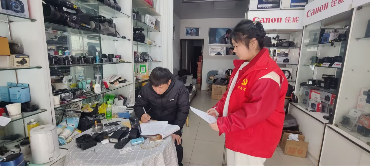 窦文霄同学在2025年1月10日到2025年2月7日参加新华陈州社区办事处的社会实践活动。临近过年,社区组织消防安全排查工作和烟花爆竹禁燃禁放工作,窦文霄同学和社区工作人员积极参与去门店排查消防安全隐患并告知他们进行限期整改,下发安全隐患整改单,排查安全隐患,守护居民的健康,平平安安过大年。
