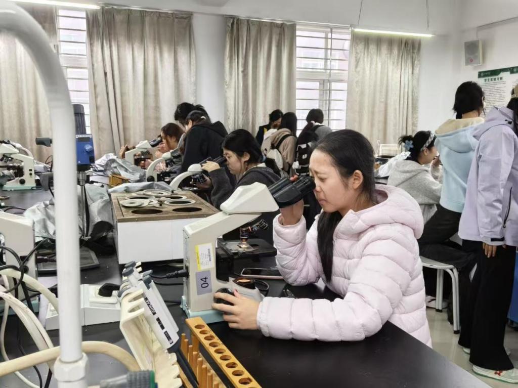 活动开展过程中,每位同学面前均摆放有一台显微镜和一份观察样本,为自主探索微观世界提供了充足保障。考虑到实验操作的专业性,工作人员已提前精心制备好临时装片并逐一分发。针对部分同学因焦距调节不当、视野定位不准未能观察到样本的情况,现场工作人员迅速上前提供协助,帮助同学们清晰捕捉到草履虫的形态特征与运动轨迹。整个实验室秩序井然,既洋溢着严谨的科学探索氛围,又饱含着细致的服务温度,同学们在亲身体验与专业指导中,深度感受着微观生命的独特魅力与实验探索的乐趣。