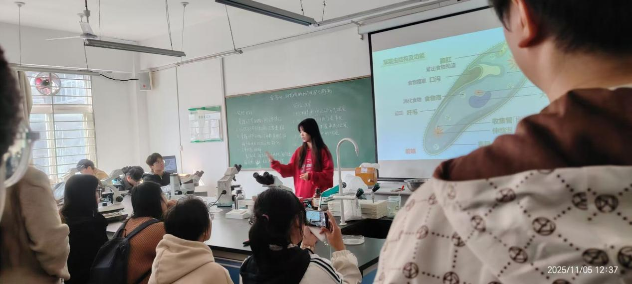 阳光透过实验室的玻璃窗,洒在显微镜的镜头上,折射出一片微观世界的光亮。为了让同学们深入探索微观生物世界,培养对生物学的兴趣,拓宽知识视野,2025年11月5日至11月9日,在人与自然生物爱好者协会会长和副会长的带领下,以“草履漫游,微观探幽”为主题的活动在理工楼415、416圆满举行。本次活动吸引了众多同学参与,现场气氛热烈。