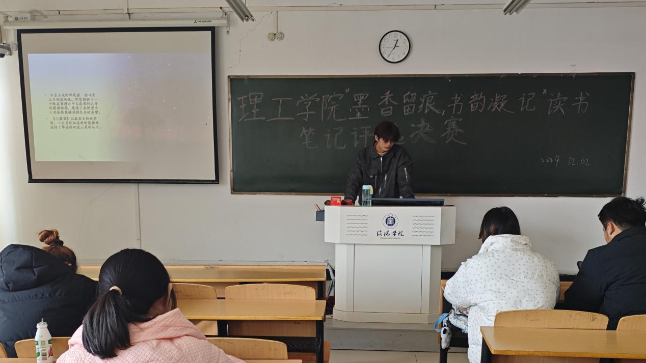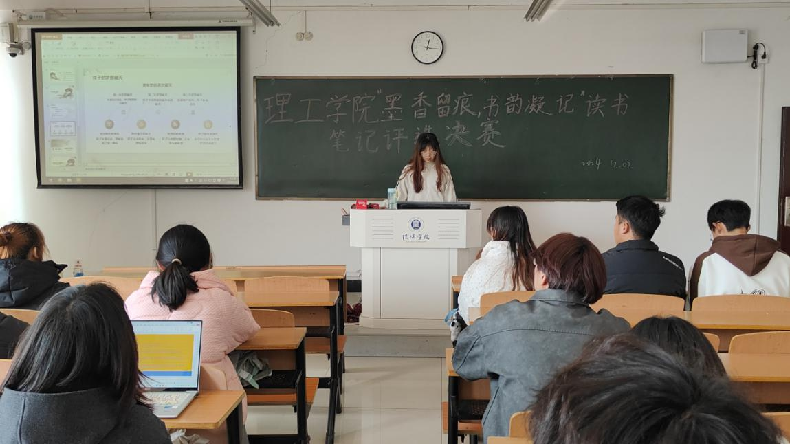 古人有云“观书有会意处,题其衣裳,以记其事”,为深入推进优良学风建设,进一步激发学生读书的热情,打造“书香理工”。9428cn太阳集团开展“墨香留痕,书韵凝记”读书笔记评选活动。本次活动分为初赛和决赛。经过层层筛选,共有15名优秀选手脱颖而出。复赛于12月2日中午在理工楼504、505教室举行。