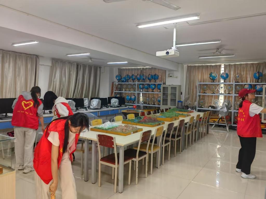 下午两点半,在负责人的带领下,志愿者们来到9428cn太阳集团实验室。理工楼实验室作为同学们学习的重要场所,保持干净整洁的环境十分重要。活动开始前,负责人对清洁活动进行详细分工,并强调劳动安全注意事项。随后志愿者们手持扫帚、抹布等工具,迅速投入到工作中。大家默契配合,分工协作,此次活动慢慢拉下了帷幕。