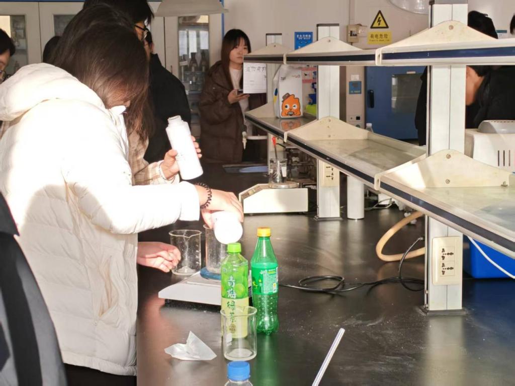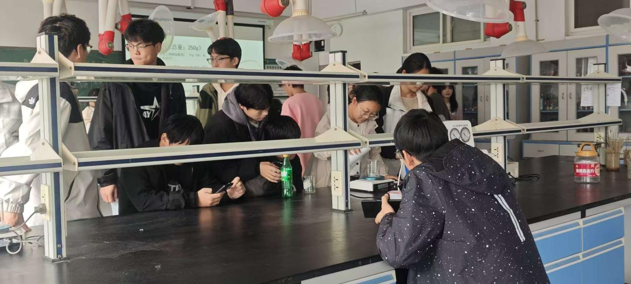 实验期间,社长与部长们全程巡回指导,及时纠正操作中的细节问题,同步科普实验室安全防护知识,帮助同学们养成规范操作习惯,增强安全防护意识。活动现场氛围热烈,同学们相互交流操作心得,积极探讨原料配比对洗衣液效果的影响,在实践中深化了对化学知识的理解。