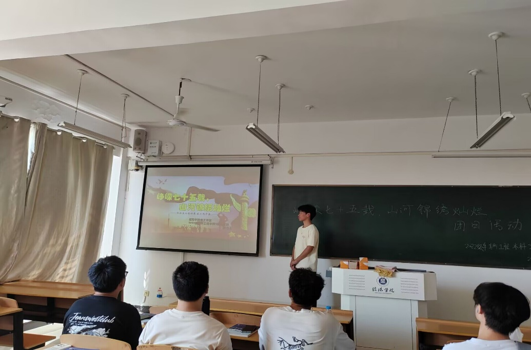 22地理本02班通过主题班会的形式,由团支书深入讲解国庆的深刻意义和新中国的发展历程,介绍1949年新中国成立的伟大时刻以及此后的重大建设成就,让同学们对国庆有了更为深入的了解。
