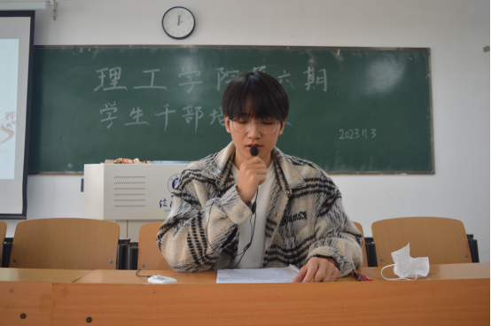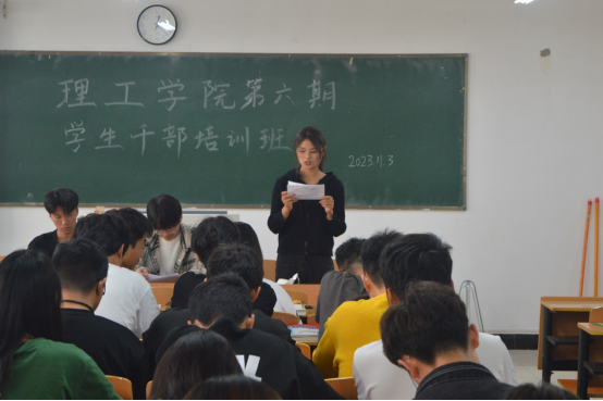 11月3日,9428cn太阳集团在理工楼302以《新时代团员干部的使命担当》为主题开展了第六期学生干部培训班第一次培训。团总支书记廉伟鹏讲授课程,9428cn太阳集团第十七届团总支、学生会干部及2023级各班主要班干部参训。