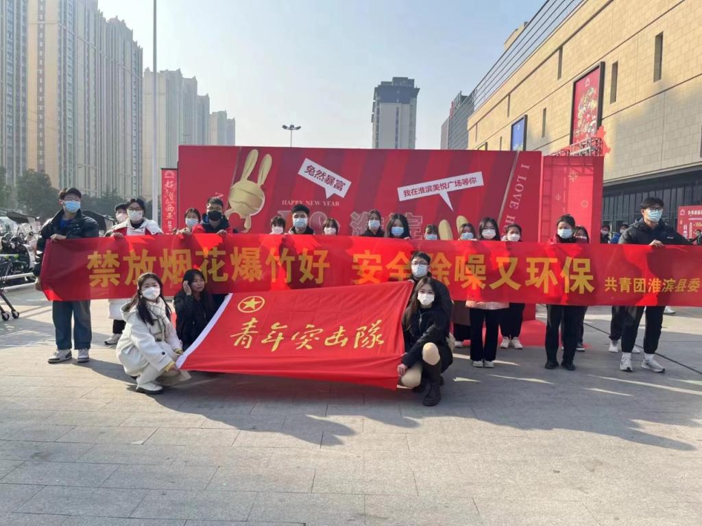 2023年1月11日,团员郜伊涵和其他志愿者们在信阳市淮滨县新西亚美悦广场开展主题为“烟花爆竹禁燃禁放”活动。她穿上志愿服后将禁燃禁放的倡议书发给路人并进行详细的讲解。倡导大家争做禁燃禁放烟花爆竹的“传播者”和“践行者”,共同守护碧水蓝天,呵护我们的美丽家乡。