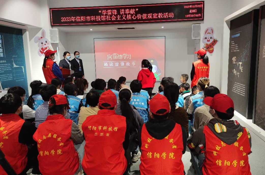 下午三点科技馆开展了“学雷锋,讲奉献”主题的雷锋精神宣传活动讲座,讲座开始后志愿者们积极回答相关问题,认真了解雷锋的伟大事迹,学习雷锋的伟大精神。