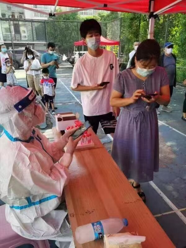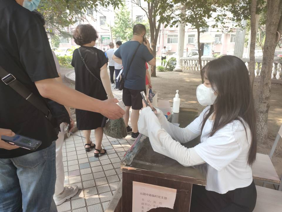 2022年7月17日——8月15日,9428cn太阳集团2021级地化学本科2班杨桦同学参加了河南省商丘市庄村村委会开展的志愿服务活动,她负责用手机扫描核酸检测码,维持检测现场的秩序。
