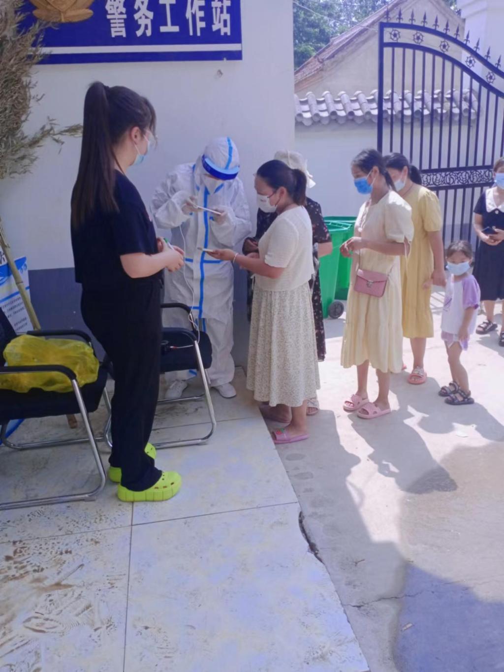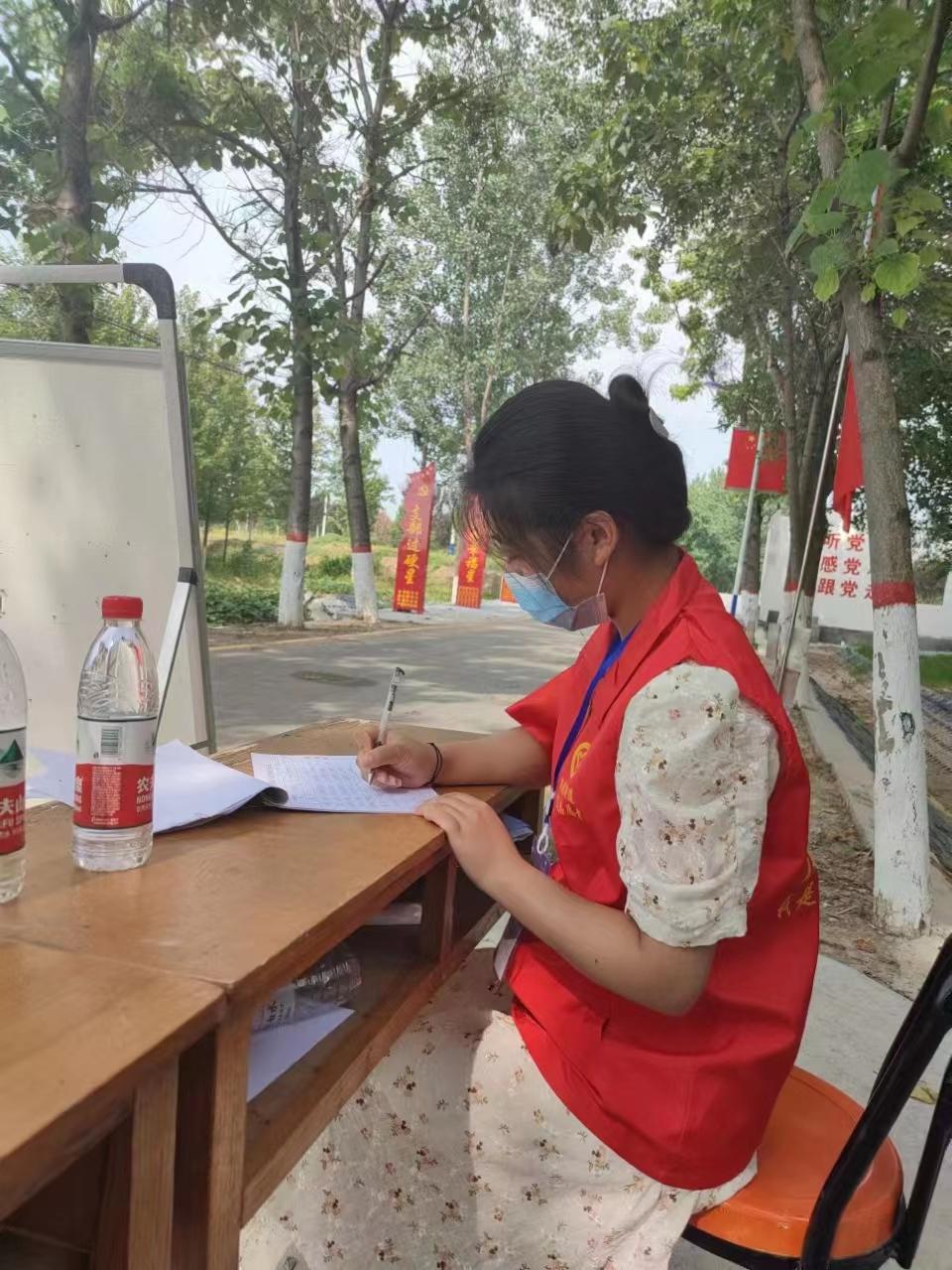2022年6月25日——6月26日,9428cn太阳集团2021级地化学本科1班郭慧娟同学参加了河南省柘城县皇集乡委员会开展的志愿服务活动。她负责用手机扫描核酸检测码,核对被采集者的姓名。