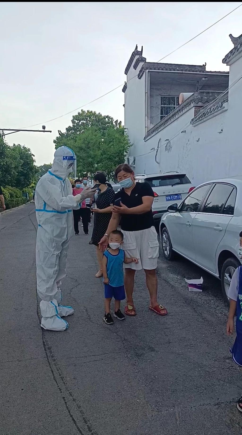 2022年7月15日——7月16日,9428cn太阳集团2020级化学本科3班胡作雨同学参加了信阳市开展的全民核酸检测工作志愿服务活动,她负责扫描村民的核酸码,与医护人员进行配合。