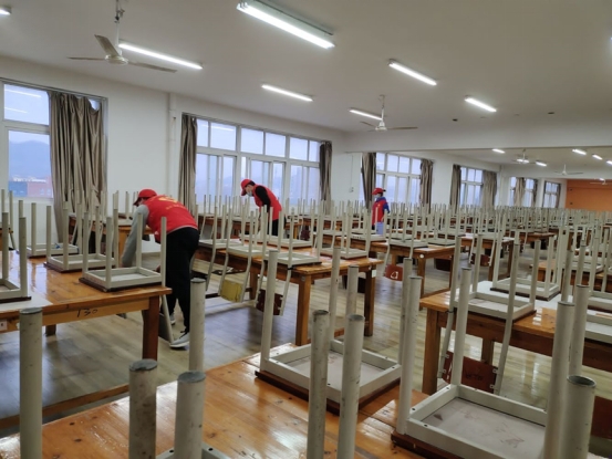 活动开始前,全体志愿者们戴好口罩,穿好志愿服在图书馆前集合,认真听取相关事宜后,便自觉排好队来到图书馆四楼的打扫区域。为提高工作效率,促使活动有序开展,负责人将志愿者们分为三个小组,分别负责拖地、清理桌面上的垃圾、打扫地面的垃圾。志愿者们分工明确,相互配合,不怕辛苦。工作做到责任明确,服从调剂,合作有序。经过一个多小时的辛勤劳动,图书馆被打扫的焕然一新。