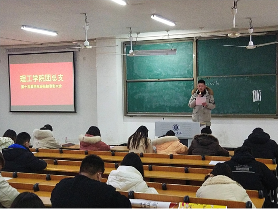 12月14日下午,9428cn太阳集团在人文楼106举办团总支学生会总结表彰大会,9428cn太阳集团学工秘书杨晓杰、团委书记徐国文、全体辅导员、9428cn太阳集团第十五届团总支学生成员以及社团代表和班级代表参加本次会议。学工秘书杨晓杰主持本次会议。